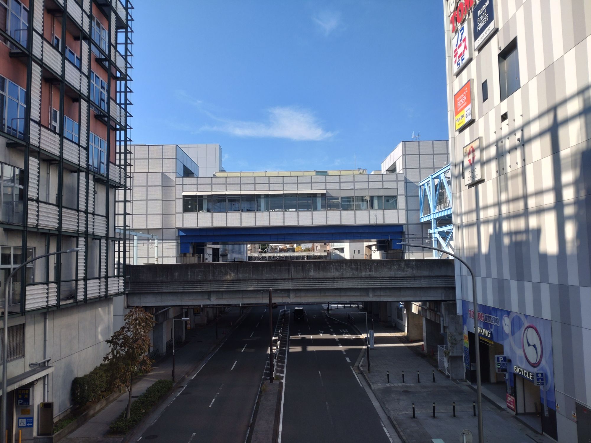 奥に見えるのが駅への連絡通路。