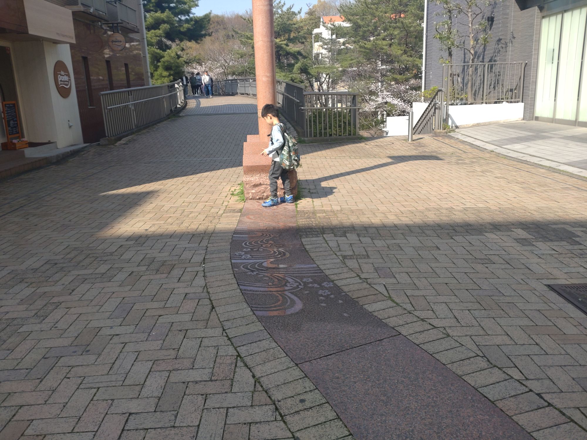 川と桜を模したタイル。