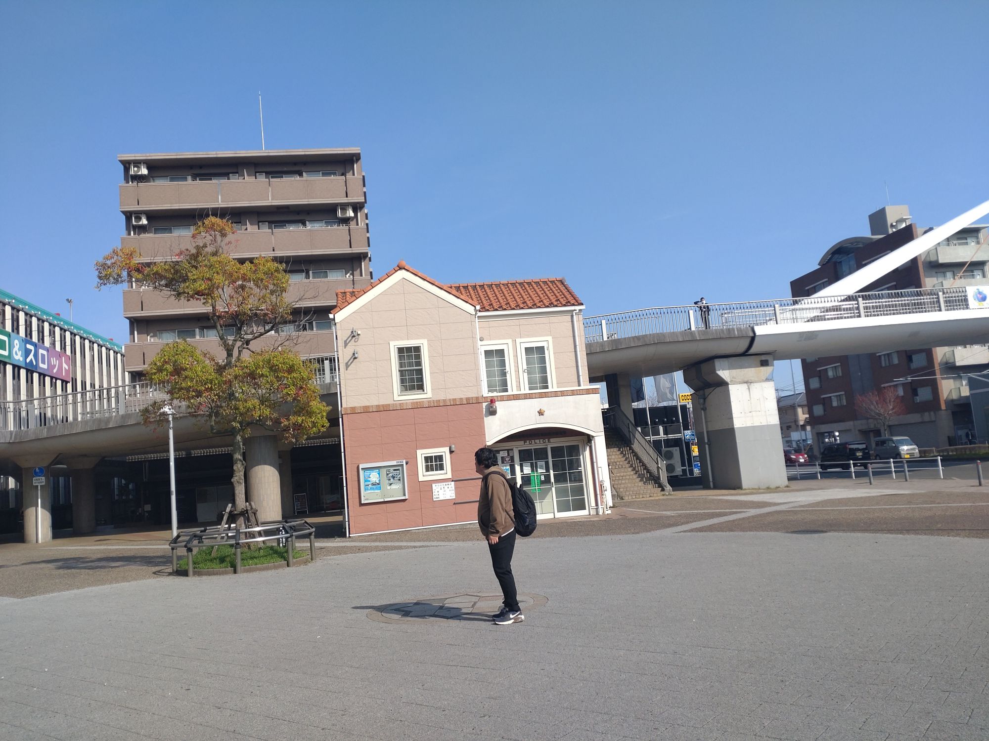 駅を出るとすぐ目に入って来るのがこの歩道橋。